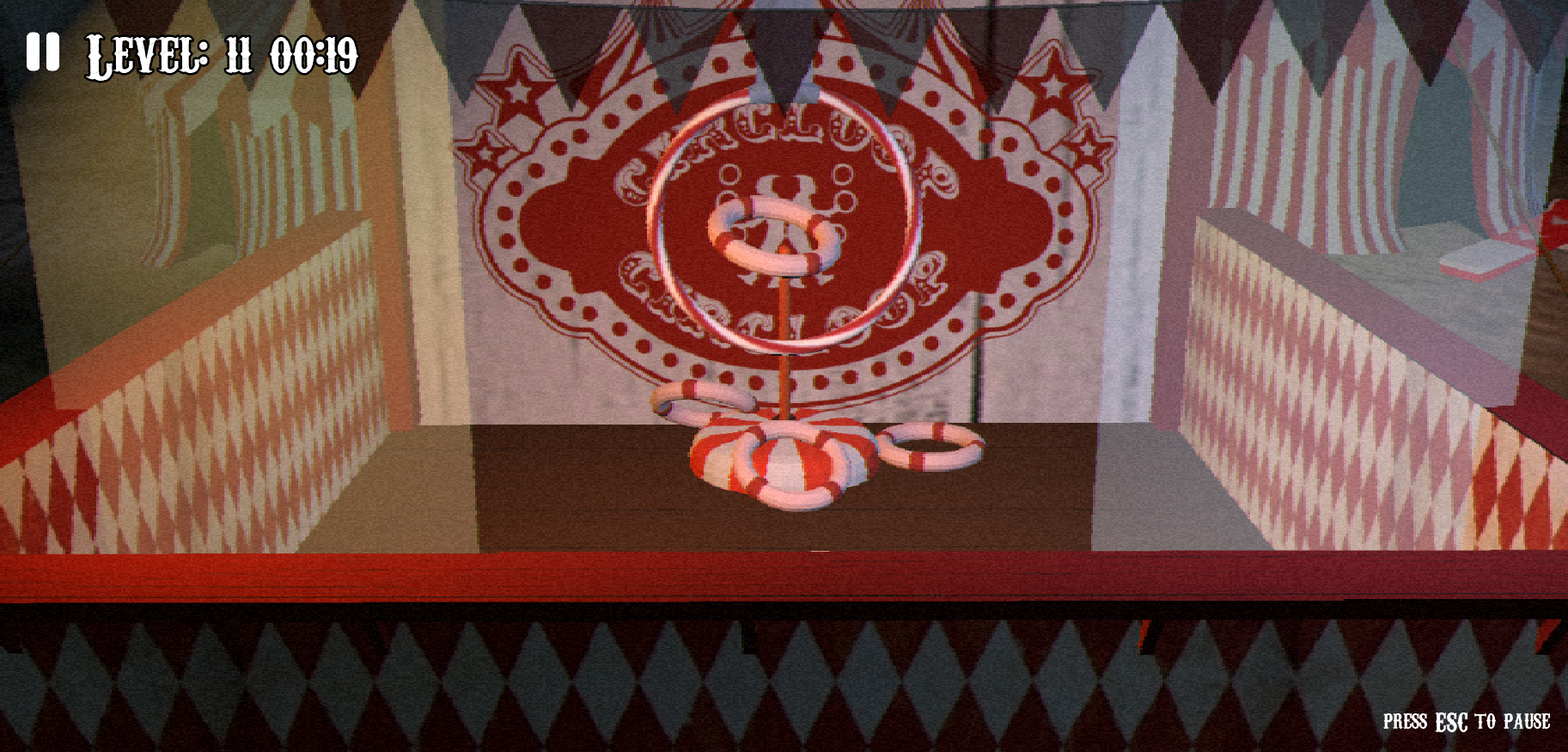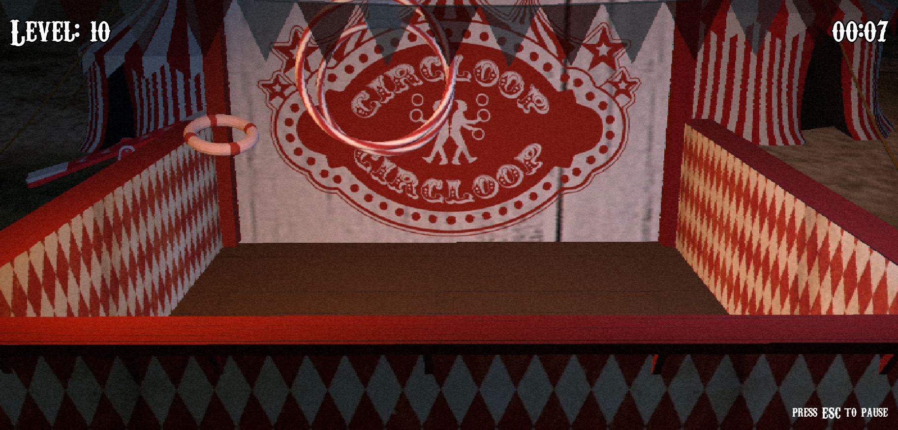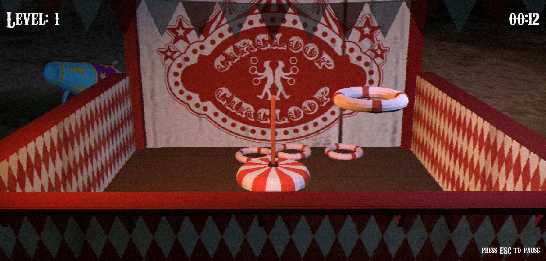 Step into the Circloops loops‑toss stand, the circus booth where you must skillfully throw loops into poles and loops to clear scenarios with increasing difficulty
